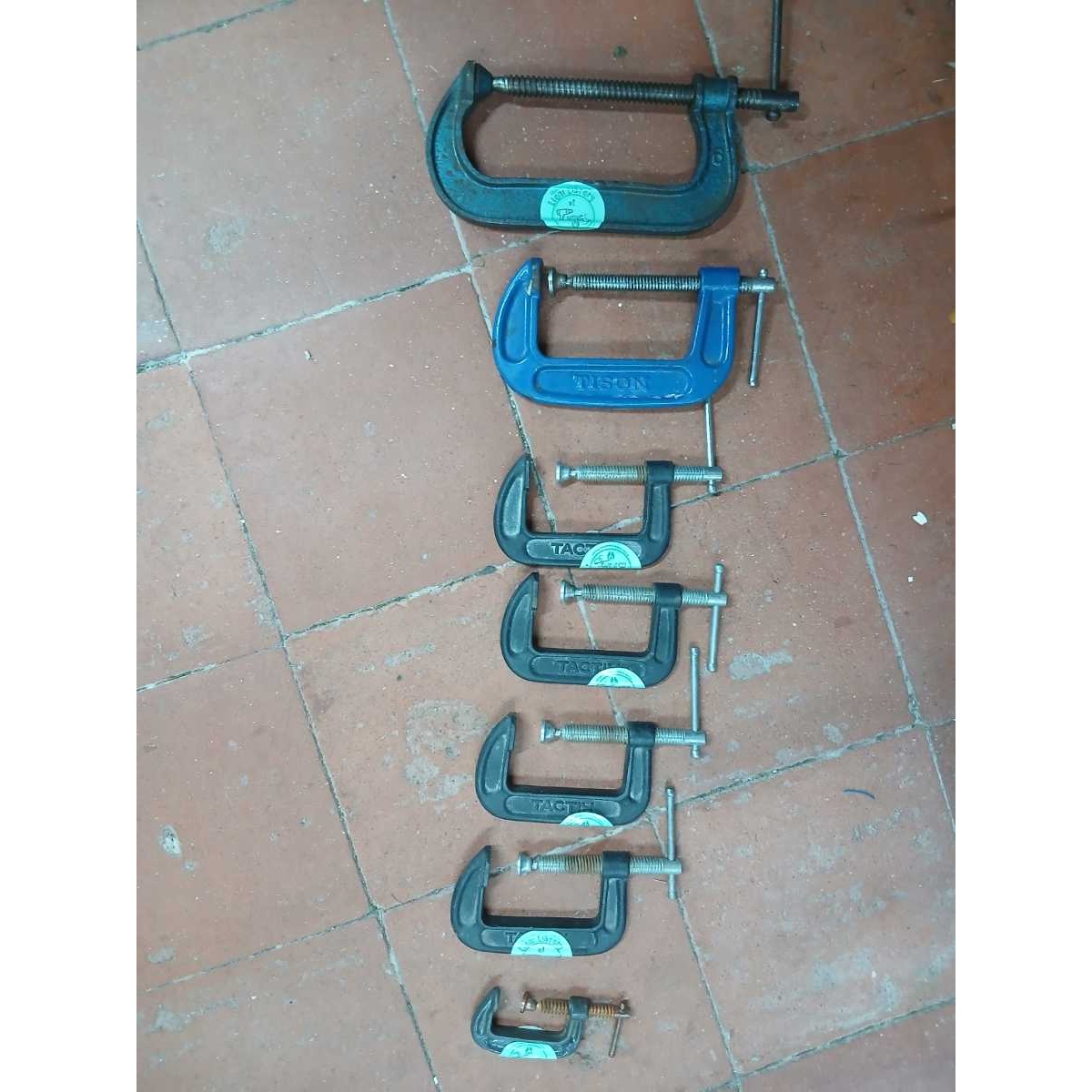 Set of 7 G Clamps - 1 at 6", 1 at 4", 4 at 3", 1 at 2" Grip Clamps