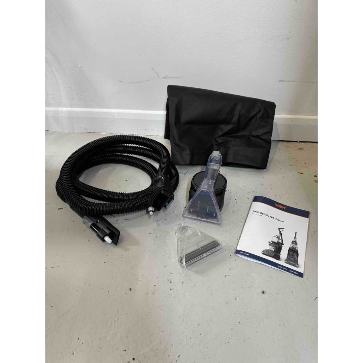 1x Pre-treatment hose, 1x Upholstery tool, 1x Spin scrub brush, 1x Hard floor rubber attachment, 1x spray wand