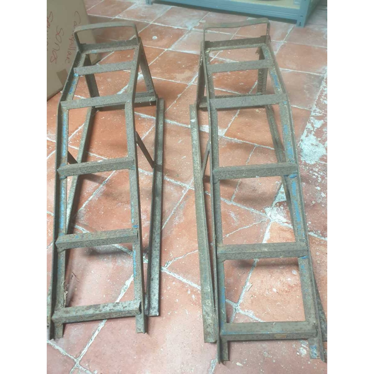 2 metal drive on car ramps. 9ins/ 23cm high and 30ins/ 76cm long.