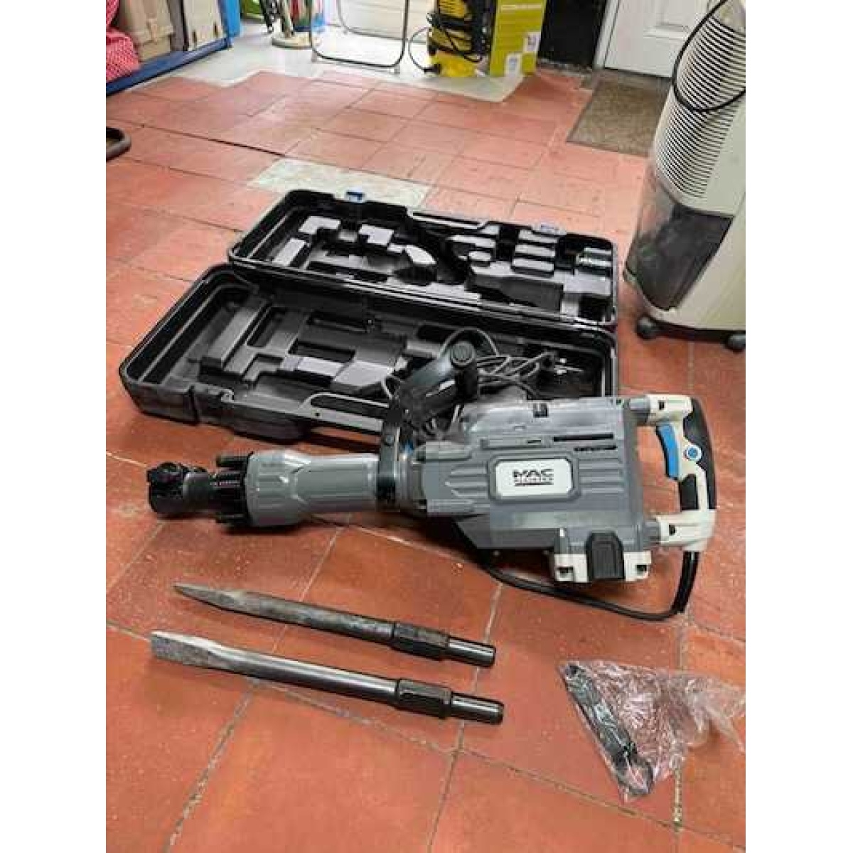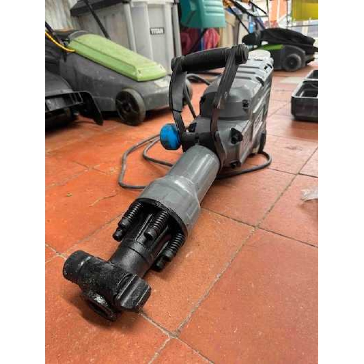 Powerful electric breaker ideal for heavy-duty demolition tasks such as breaking concrete, asphalt, and masonry. Supplied with the main unit, durable carry case, tool wrench, and two tool shank attachments for versatile use on different materials and instruction manual.